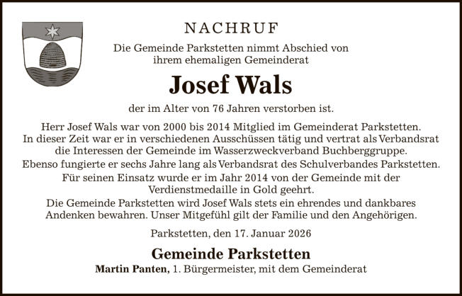 In Memoriam Herr Josef Wals war für die Freie Wählergemeinschaft (FWG) mehr als 14 Jahre sehr aktiv im Gemeinderat tätig. Auch die Mitglieder der SPD und der FWG werden ihm stets ein ehrendes und dankbares Andenken bewahren.